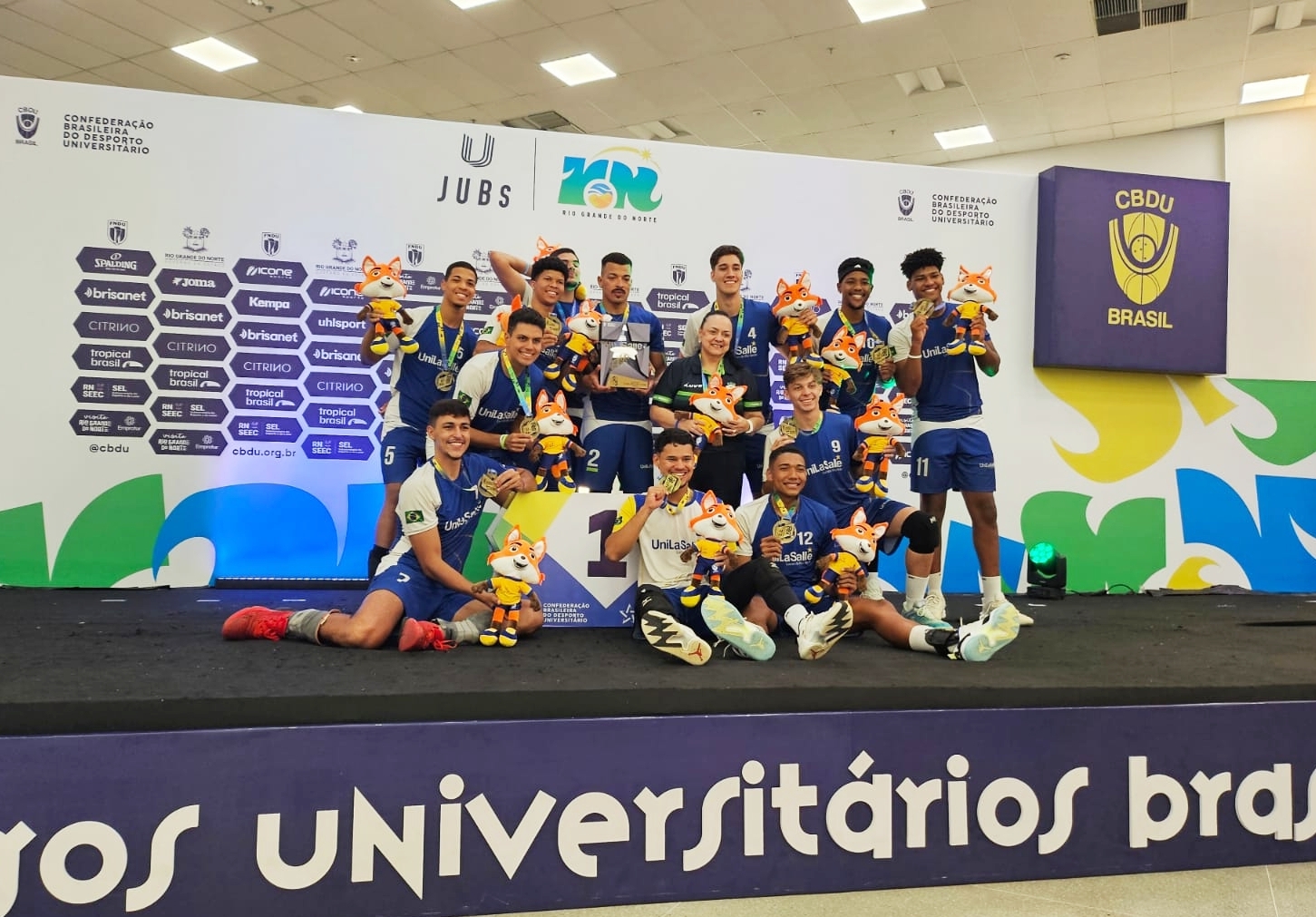 A equipe masculina de voleibol Seleção Vôlei Luverdense Unilasalle conquistou o título de campeã dos Jogos Universitários Brasileiros (JUBs) ao vencer o time do Centro Universitário Aparício Carvalho (FIMCA - RO) na grande final, realizada em Natal (RN).