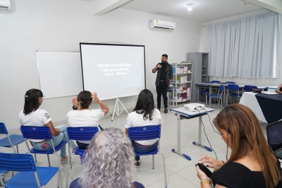 Como parte da disciplina de Múltiplas Linguagens voltada para a Literatura Infantil, os acadêmicos desenvolveram projetos sobre práticas literárias. Na atividade teve contação de histórias pela professora Sirlaine Fávero, além de participação de Carmen de Oliveira Melo, escritora ocupante da décima cadeira da Academia Luverdense de Letras.