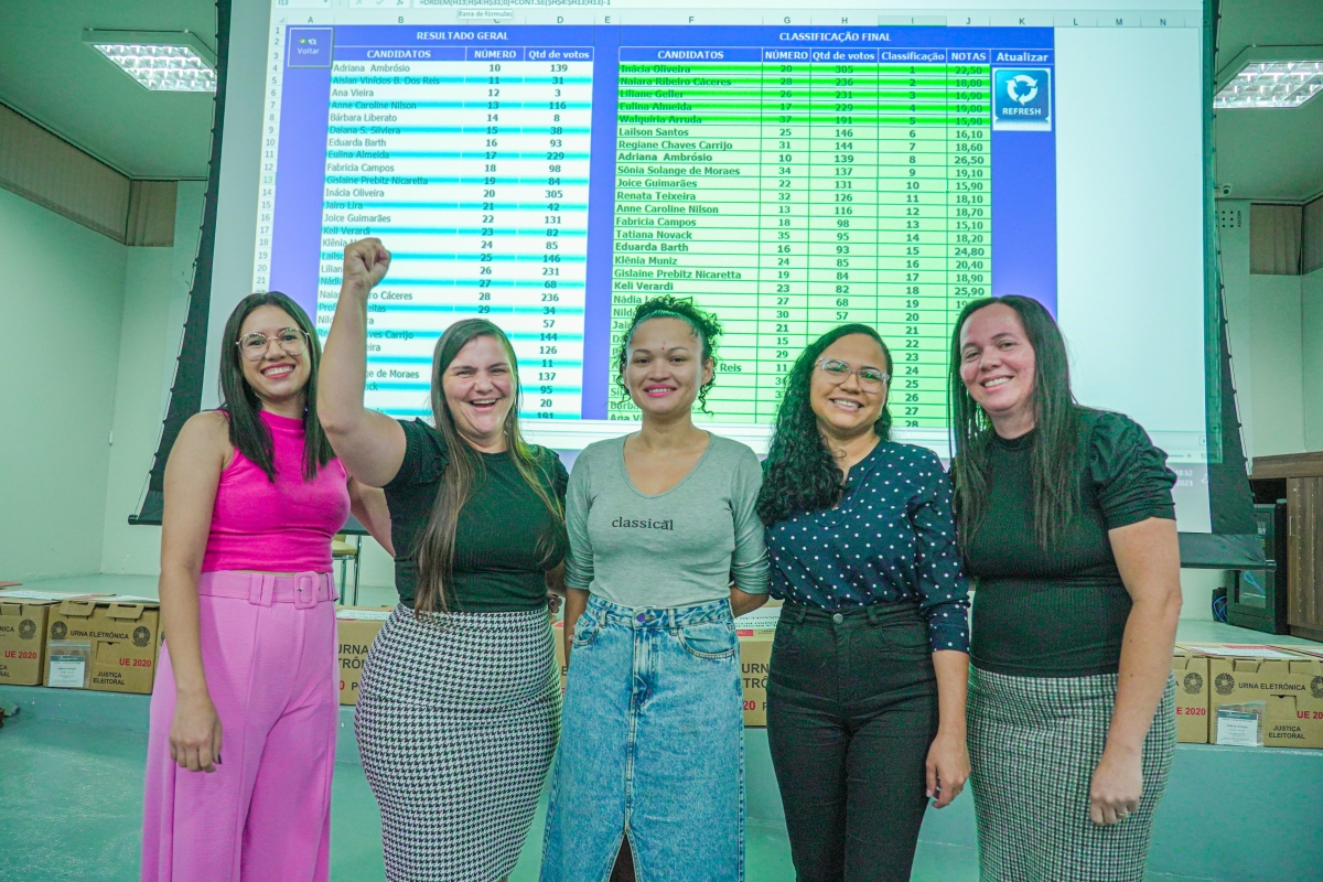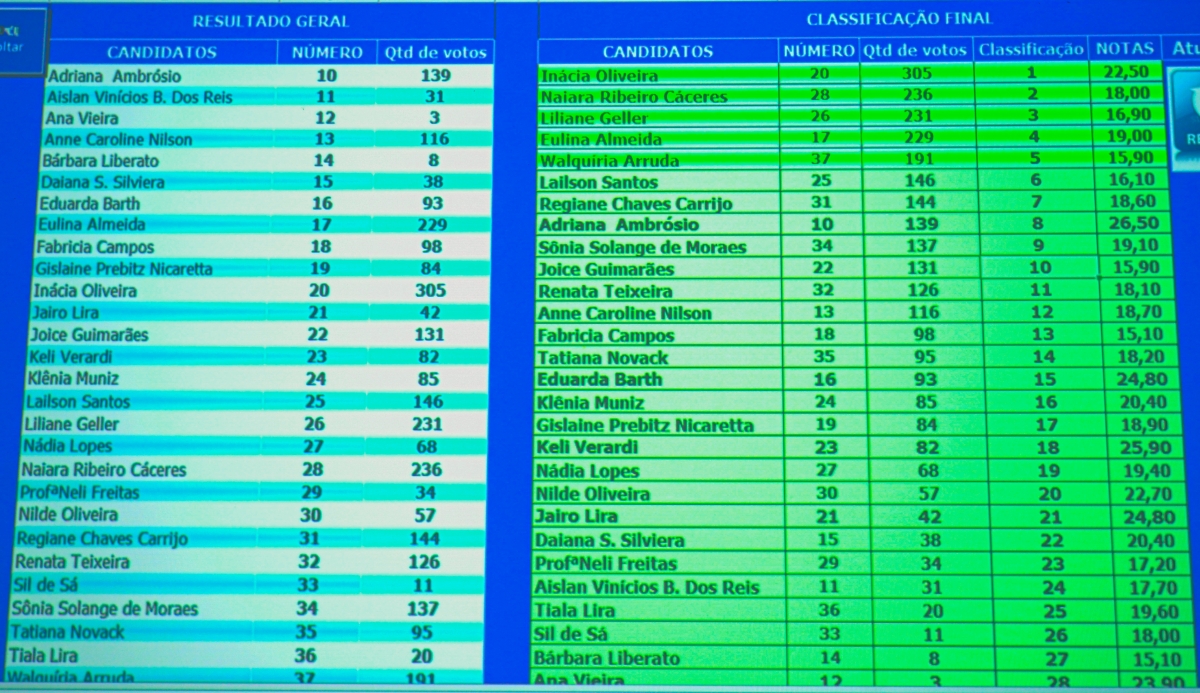 Foram eleitas titulares: Inácia Oliveira (305 votos), Naiara Ribeiro Cáceres (236 votos), Liliane Geller (231 votos), Eulina Almeida (229 votos) e Walquíria Arruda (191 votos).