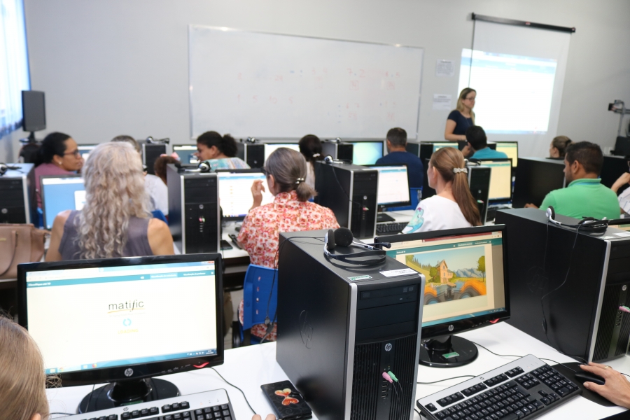 Os professores também participaram de uma oficina com a empresa Matific, que oferta plataformas digitais com projetos pedagógicos na área de matemática.