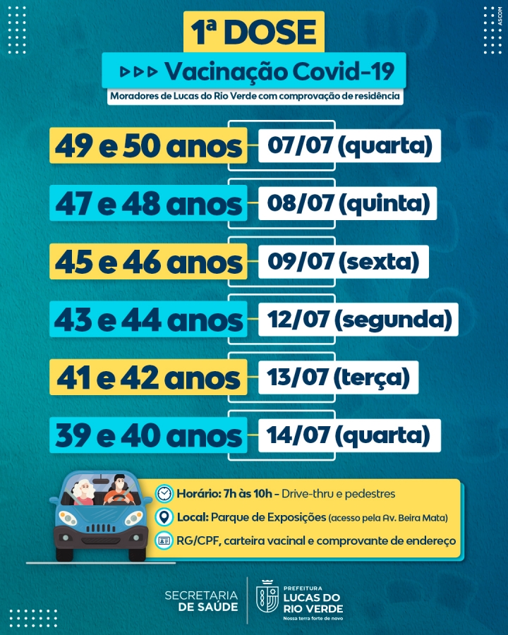Em todas as ações é obrigatória a apresentação de documento oficial com foto, carteira vacinal e comprovante de residência de Lucas do Rio Verde.