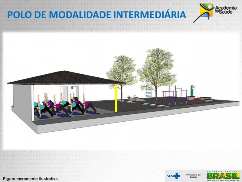 O projeto contempla área coberta e também equipamentos para atividades físicas ao ar livre