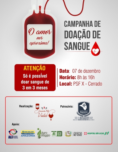 O material coletado foi encaminhado ao Banco de Sangue de Sorriso que abastece Nova Mutum, Sorriso e Lucas
