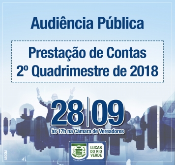 A audiência será realizada no auditório da Câmara de Vereadores, com início às 17h