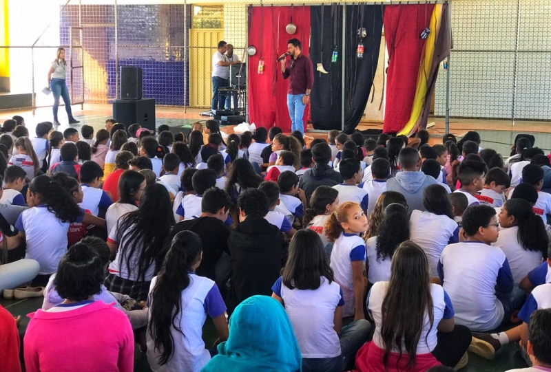 Estudantes da Escola Estadual Luiz Carlos Ceconello assistiram peça sobre separação do lixo