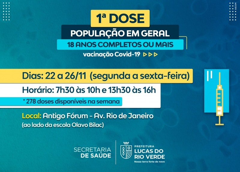 Primeira, segunda e terceira doses da vacina contra a Covid-19 serão ofertadas; ação será no antigo Fórum