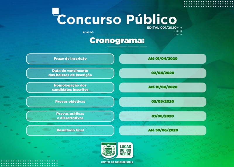 As inscrições serão realizadas até o dia 1º de abril de 2020, exclusivamente pela internet